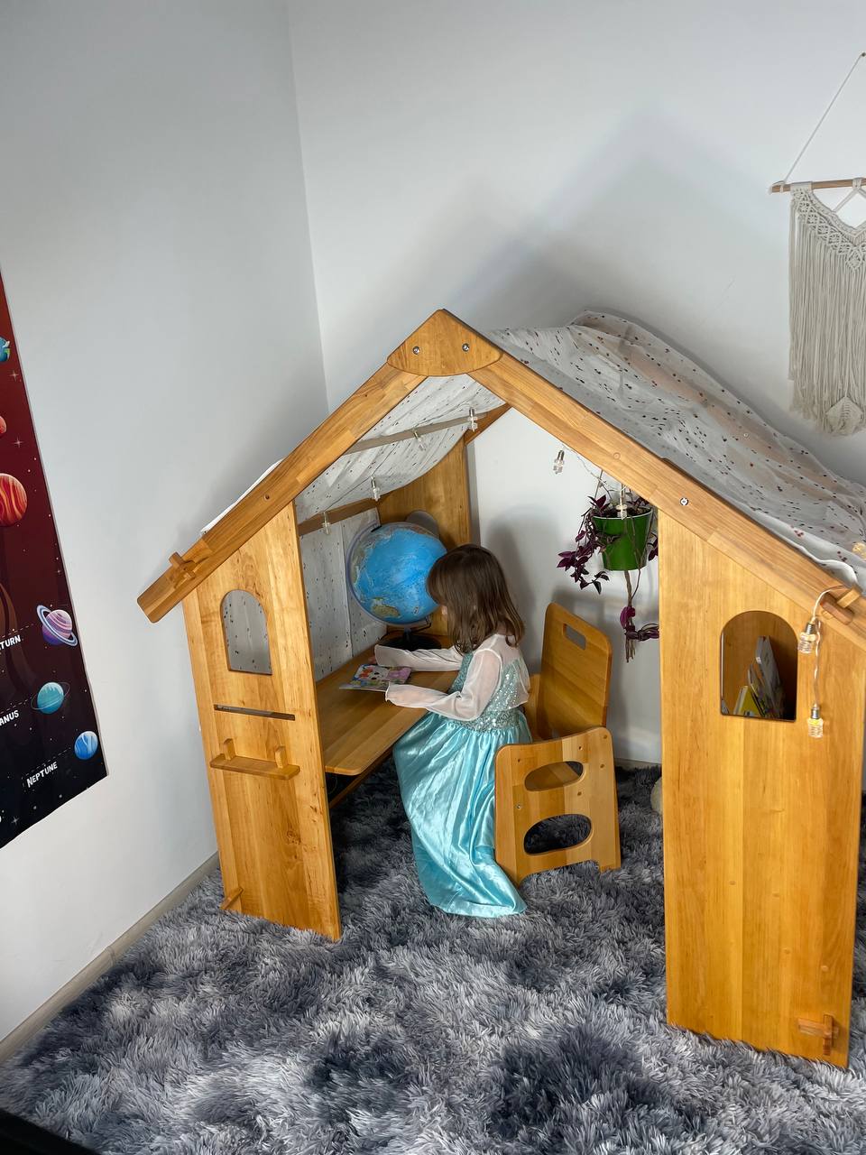 Create a magical space where your child can play, learn, and grow! This handcrafted wooden playhouse with a built-in table and open frame design is perfect for sparking imagination and independence. Thoughtfully designed to adapt to your child’s growth, it includes two table height options to suit kids from 2 to 9 years old.